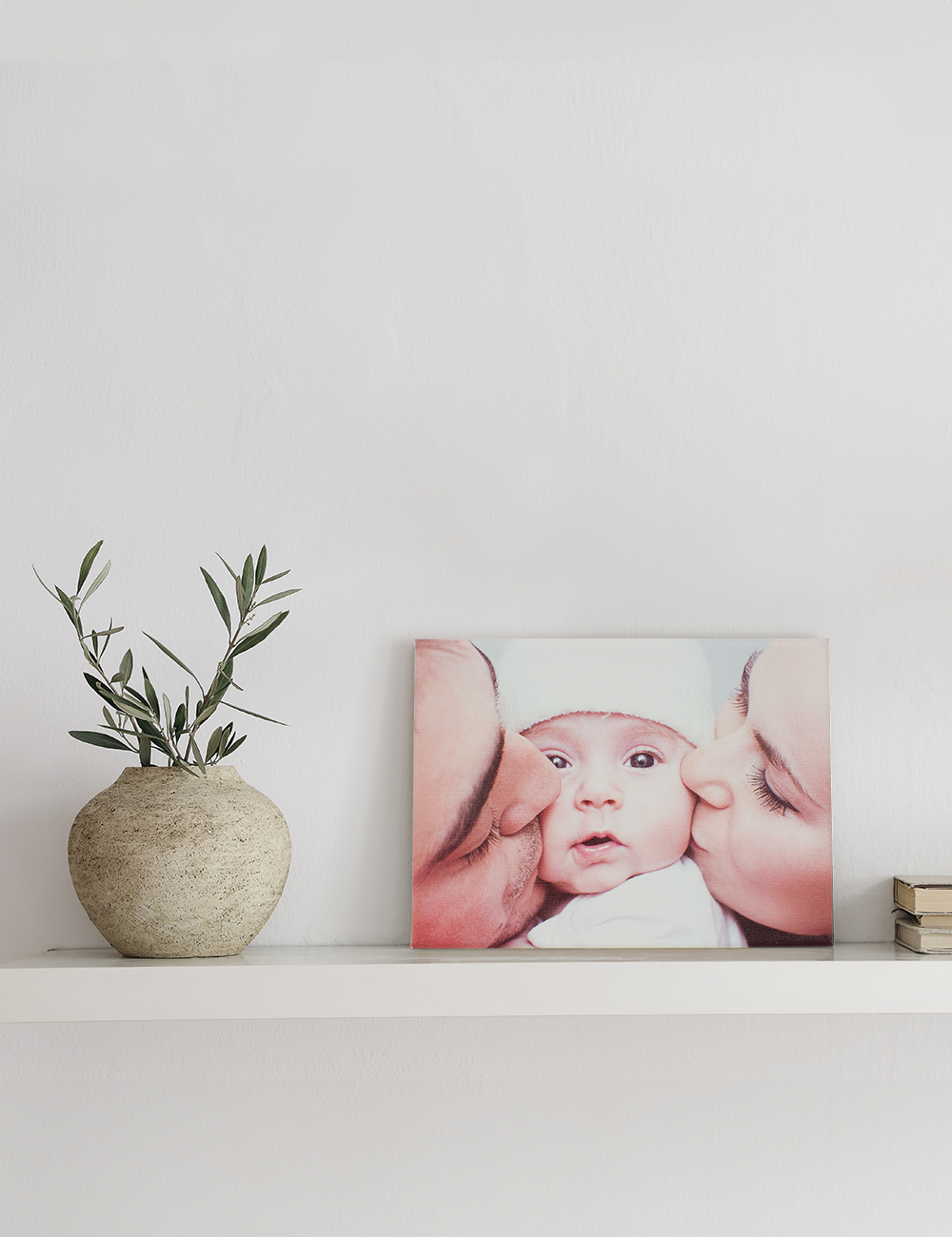Lærredets sider forbliver fortrinsvist hvide, men det yderste af dit billede vil duse lidt ned over siderne og give en elegant udtonet effekt.